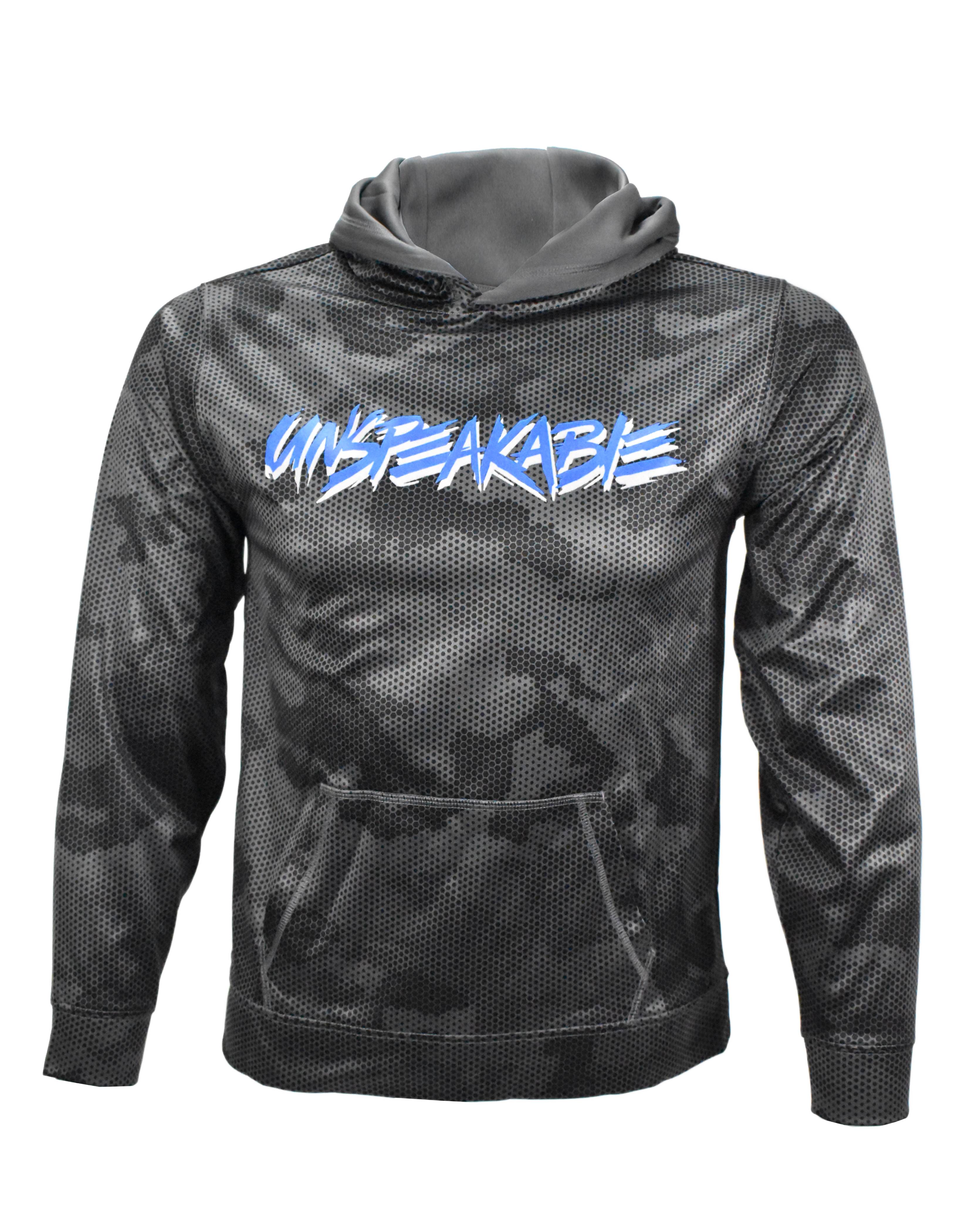- Customized with Unspeakable's logo in blue and grey
