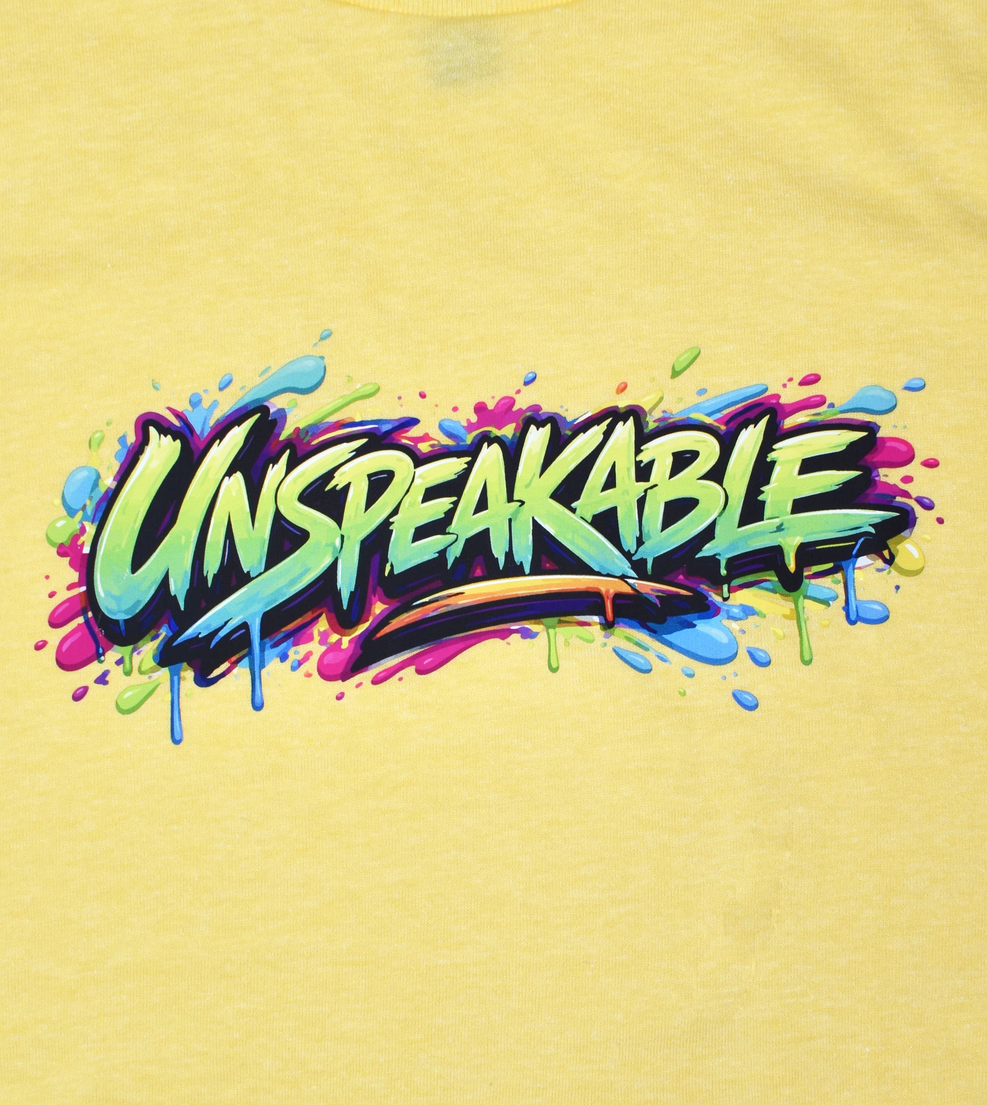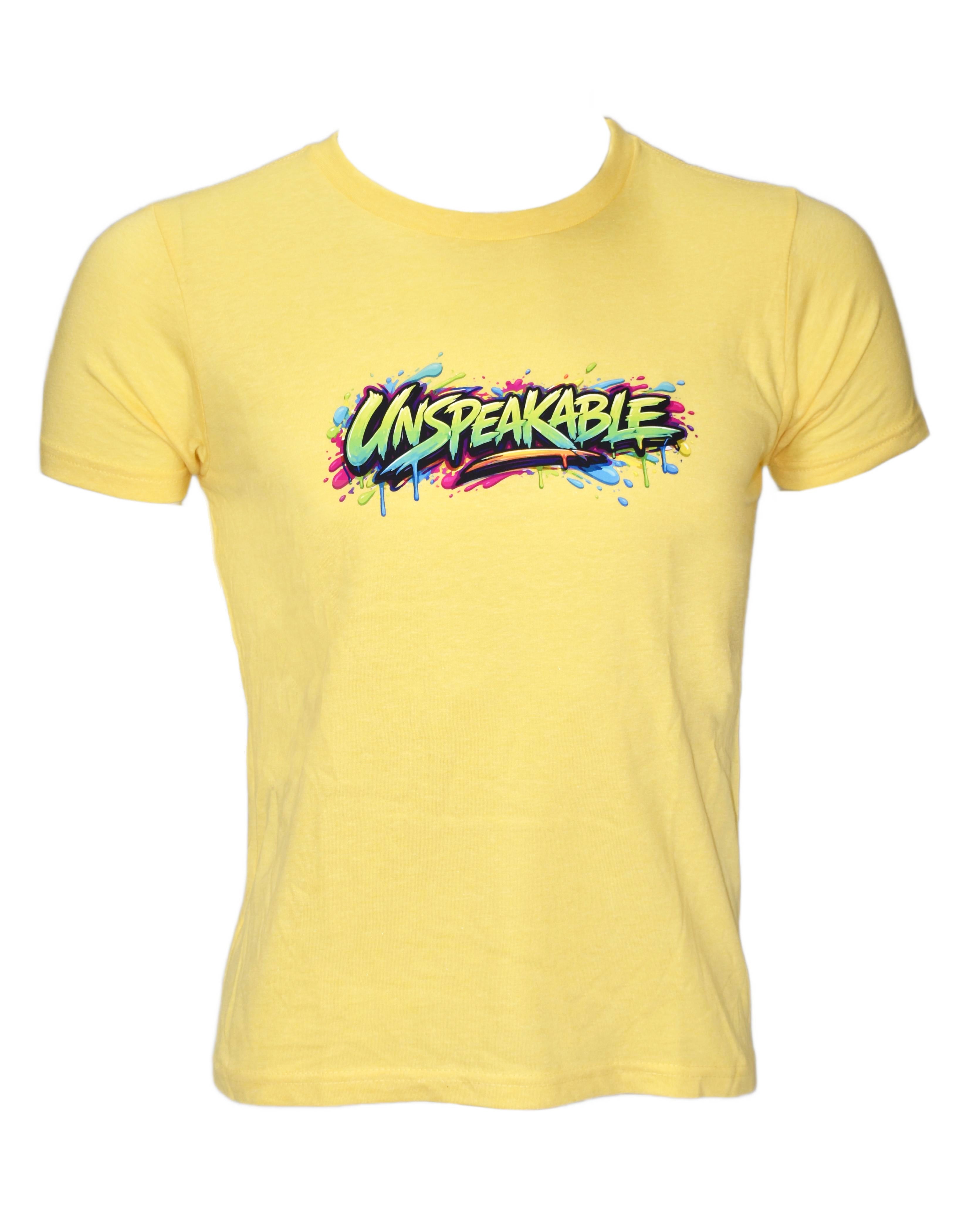 The Drip T-shirt embodies Unspeakable; Bold, bright and never boring. Starting with a banana yellow ultra soft next level t-shirt and customized with the most drippy Unspeakable logo yet, you're in for a ton of fun, a ton of compliments and more than a drip of Unspeakable pride.